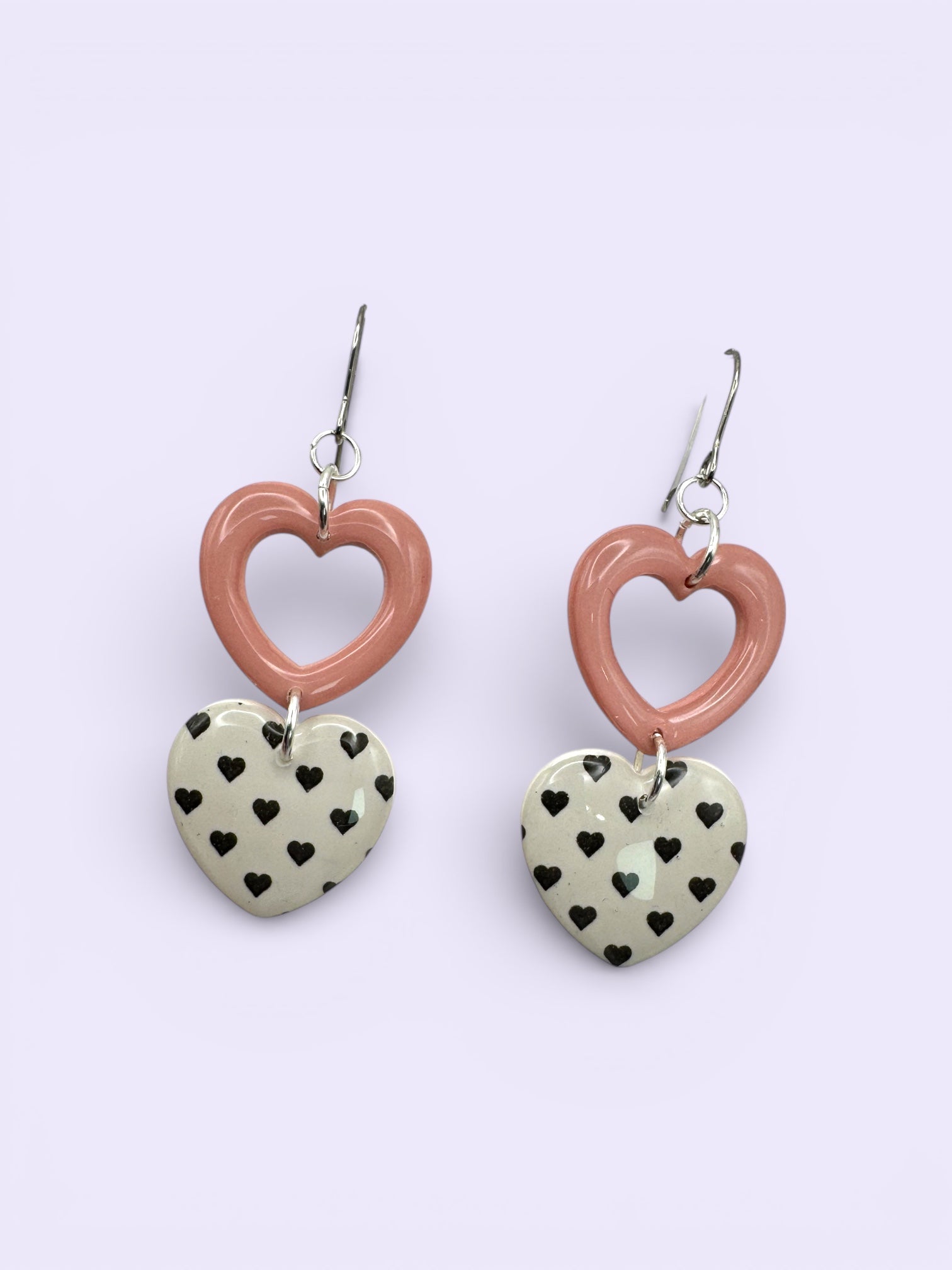 Cutout Heart 2 Tiered Dangle- Pink Black & White