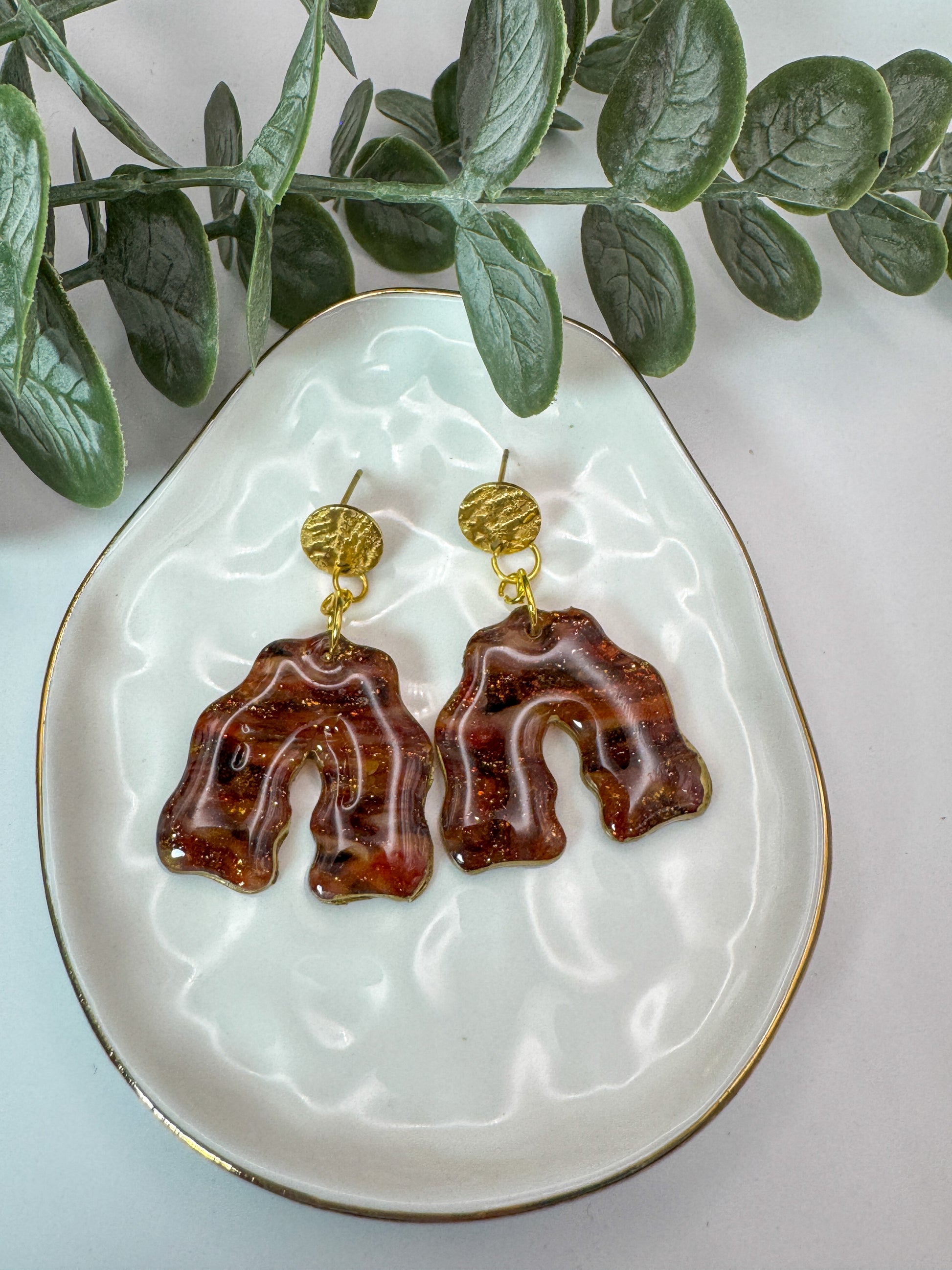 Materials: Polymer Clay and gold plated stainless steel findings